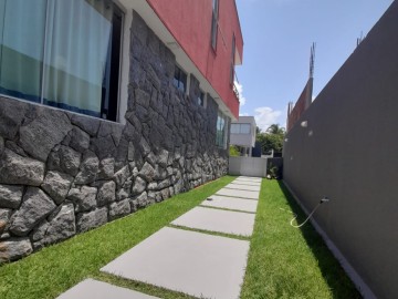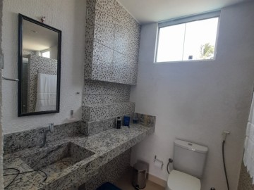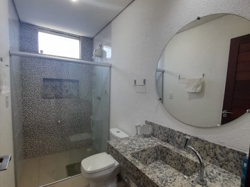 - 3 quartos, (sendo 3 suítes, uma delas é suíte master com closet no piso superior, banheiro duplo e varanda com vista mar) e as outras 2 no piso terreo)