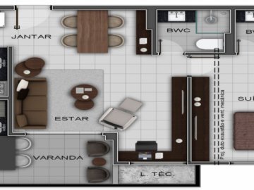 Apartamentos de 1 quarto, sala, banheiro e varanda gourmet 51m² e studios master todos com varanda de 41m²