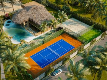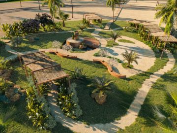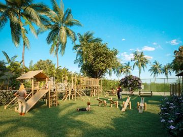 Infra estrutura completa, com rede elétrica, ruas calçadas, esgotamento sanitário, guarita de segurança, 06 áreas de lazer, com piscinas adultoinfantil, redário, espaço zen, quadras de poli esportivas, beach tênis, academia, espaço gourmet, playground, espaço ecumênico, beach club.