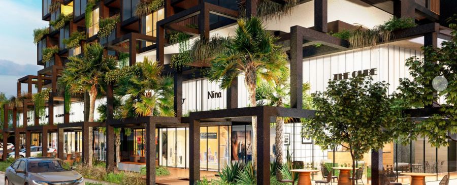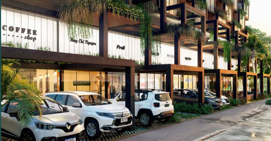 Recepção e lojas com pé direito duplo, dando imponência ao edifício;